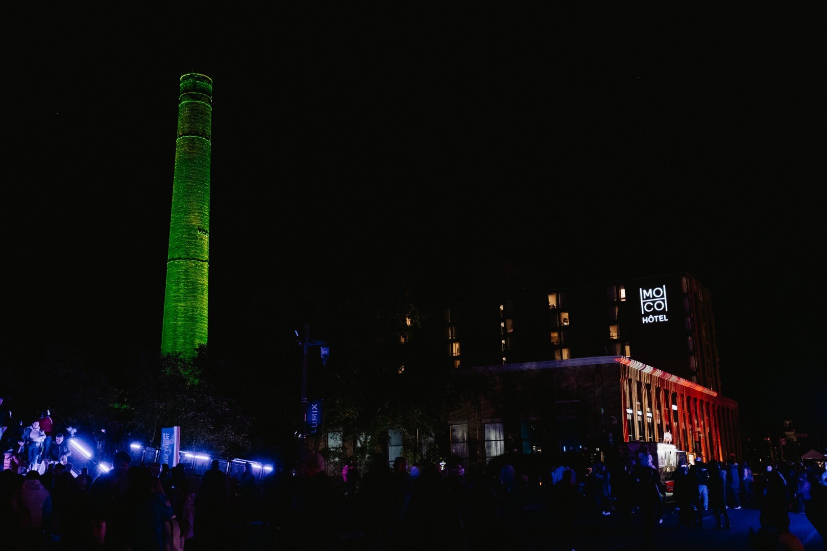 • Projections de type mapping : éclairage architectural et animé sur les murs de l’usine de filtration et de l’hôtel Moco, dont une des sections projetées sera le reflet d'une captation de la chaleur des participants qui circuleront devant.