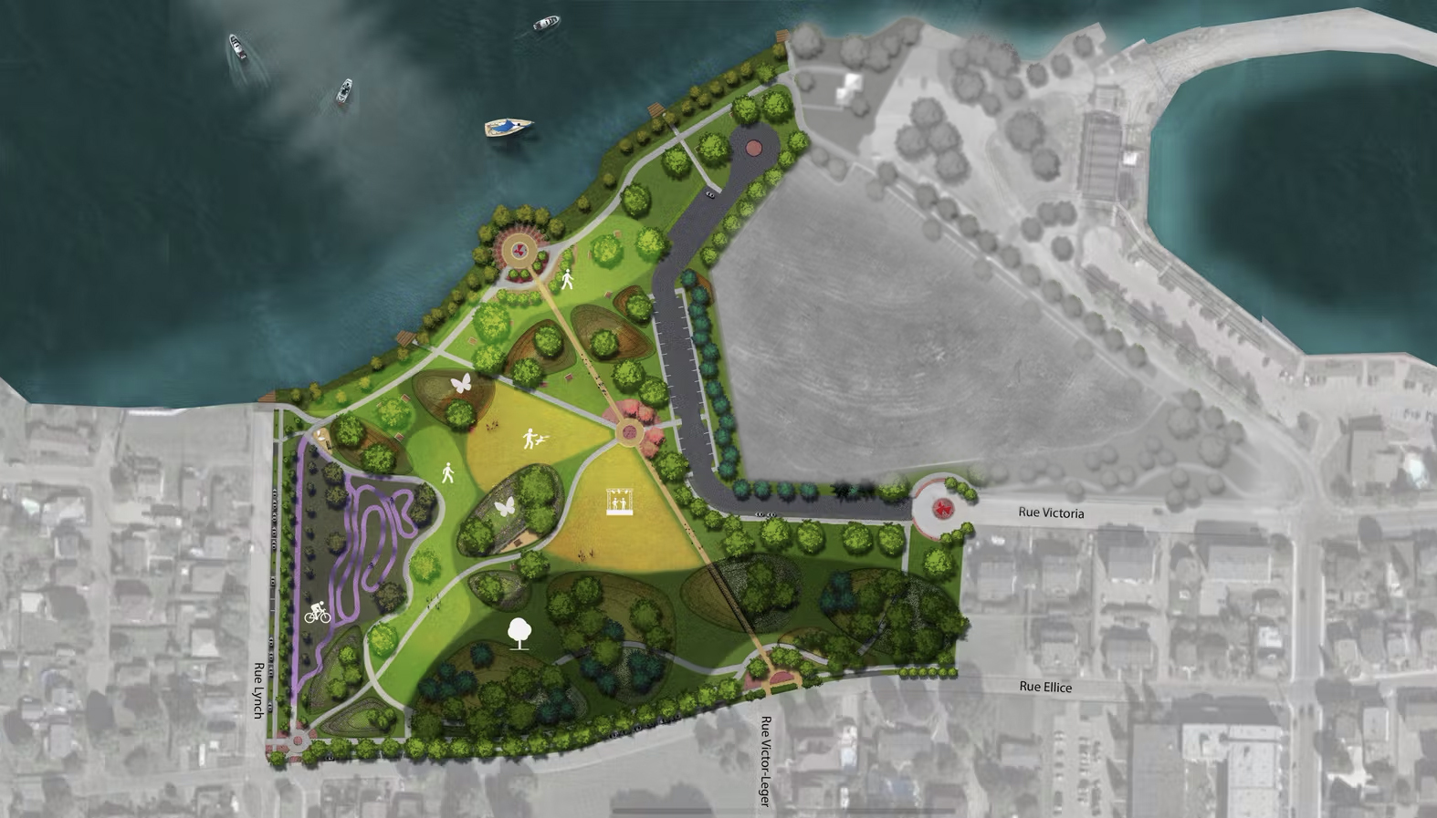 Au cœur du projet, l’espace végétalisé sera un lieu de détente quatre saisons accessible aux piétons et aux cyclistes par les rues Beaulac, Victor-Léger et Victoria. Afin de sécuriser les aménagements, tout en limitant la gestion des matières résiduelles enfouies, le sol sera rehaussé et certaines zones seront remblayées créant ainsi de toute pièce un nouveau relief qui optimisera intelligemment l’espace.