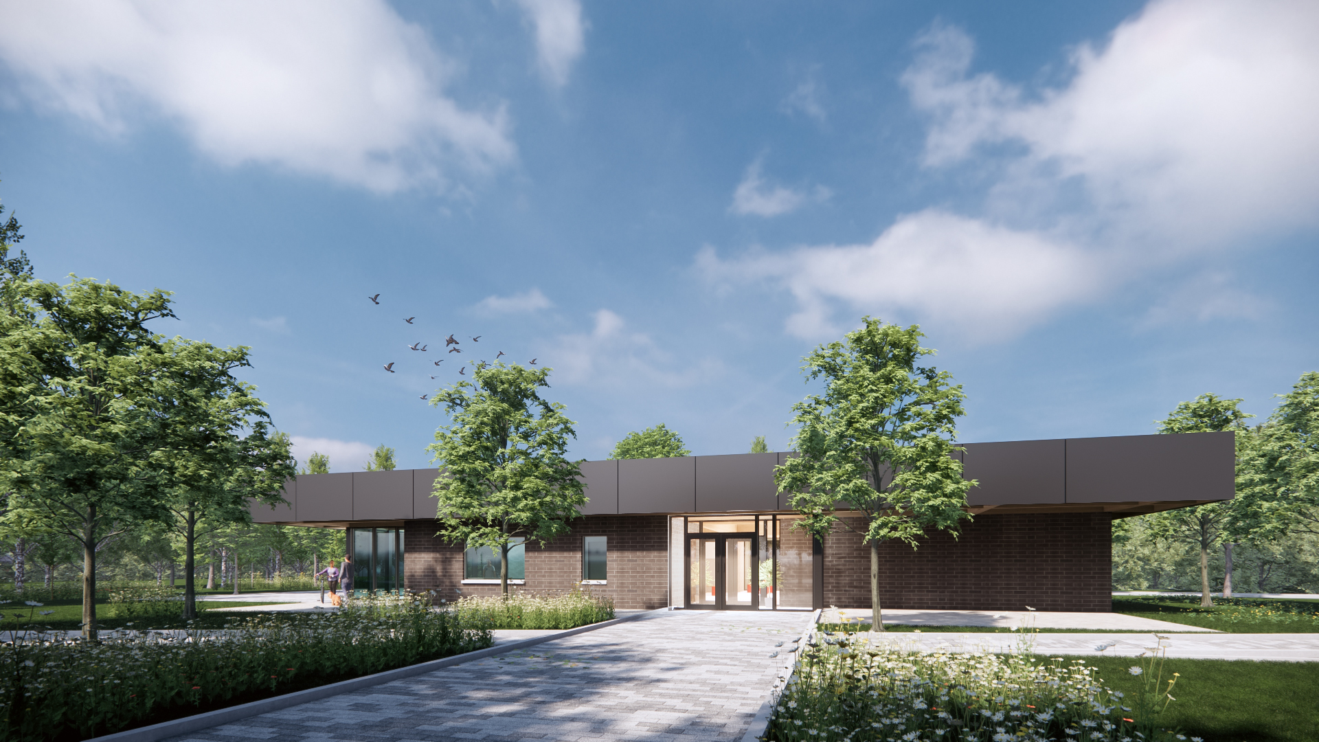 • L'aménagement d'un bâtiment de services (incluant salles de bain, une salle multifonction, un bureau et une salle de rangement et de location d'équipements);